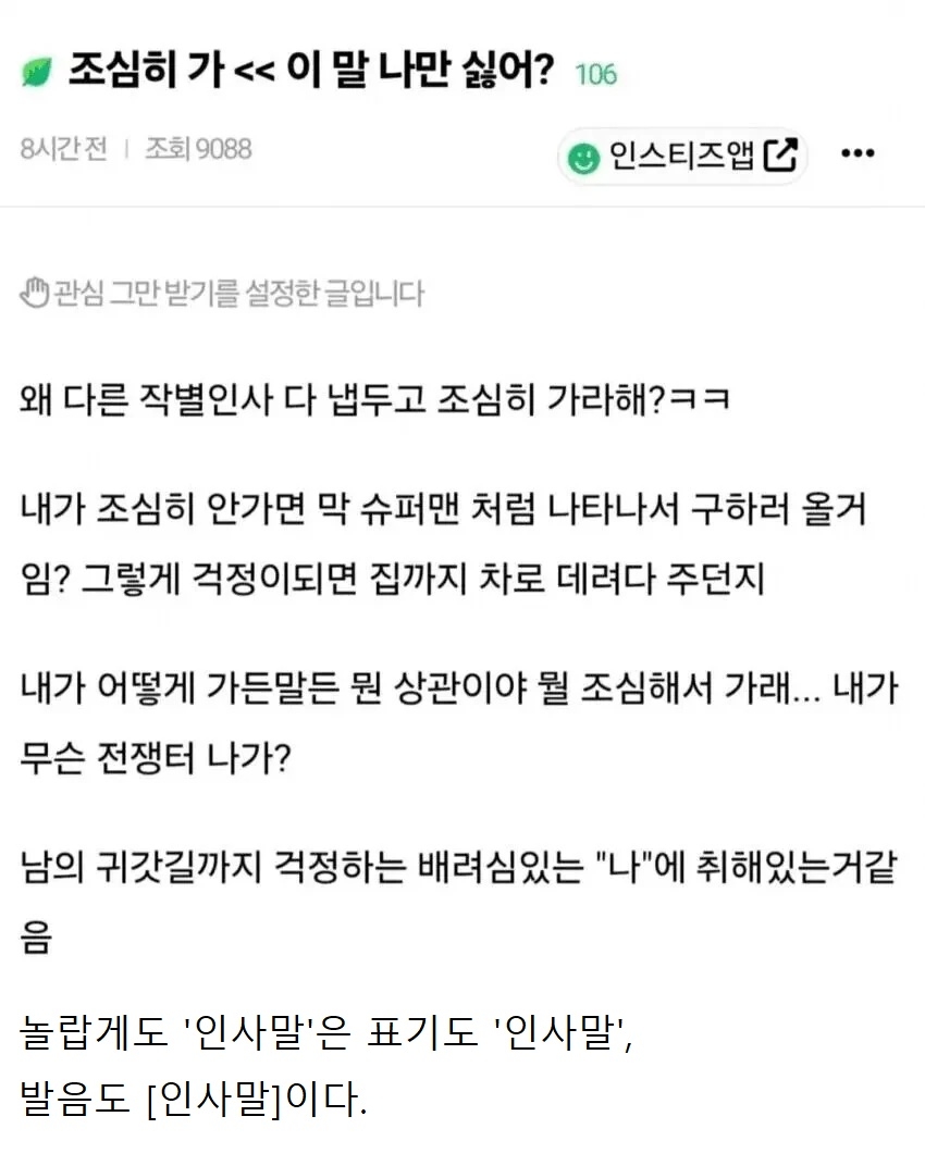 | * | 조심히 가라는 인사말이 거슬린다는 사람 [4] | 하얀물결 | 2026/02/12 |