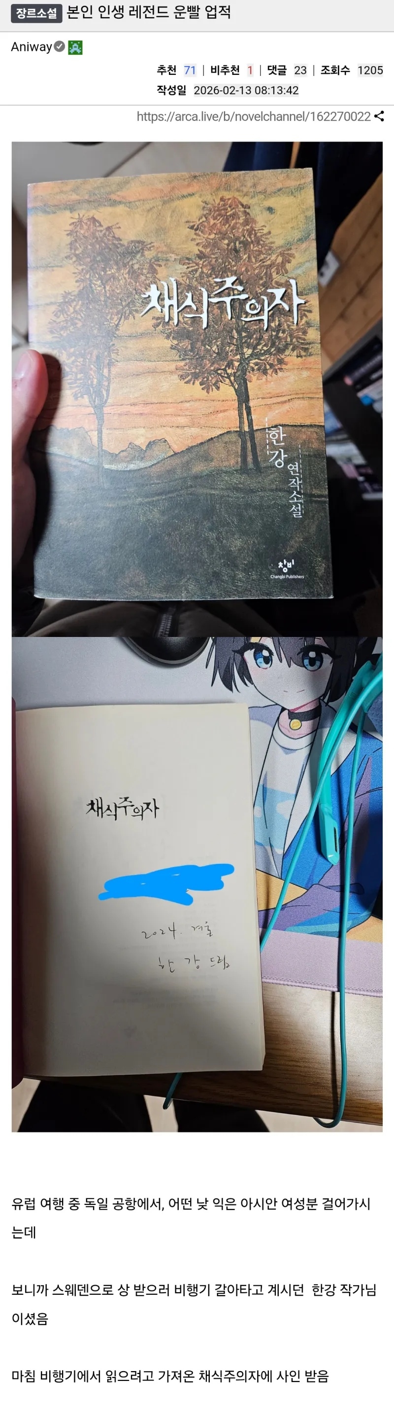노벨문학상 사인은 레전드지 ㅋㅋㅋ