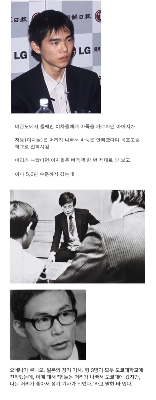 '너는 머리 안 좋으니 바둑두지 말고 공부나 하라'고 이야기 들으셨다는데,
