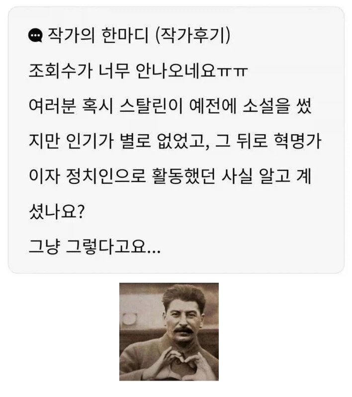 안 팔리는 글쟁이는 스탈린이 된다? 번호표 뽑고 줄 서요. 안 팔리는 글쟁이가 한 둘이 아닙니다 ㅋㅋㅋ
