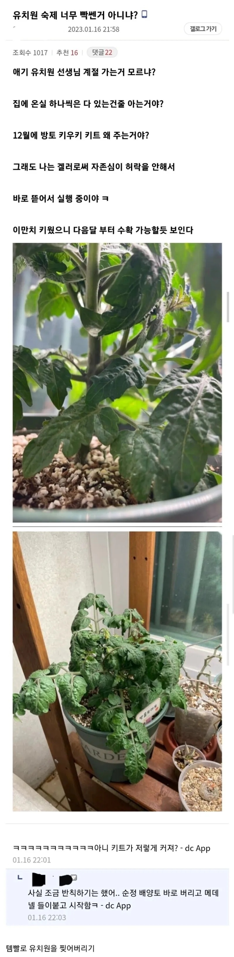 | * | 겨울에 방울토마토 키우기 숙제를 준 유치원에 분노한 부모 [3] | 하얀물결 | 2026/02/20 |