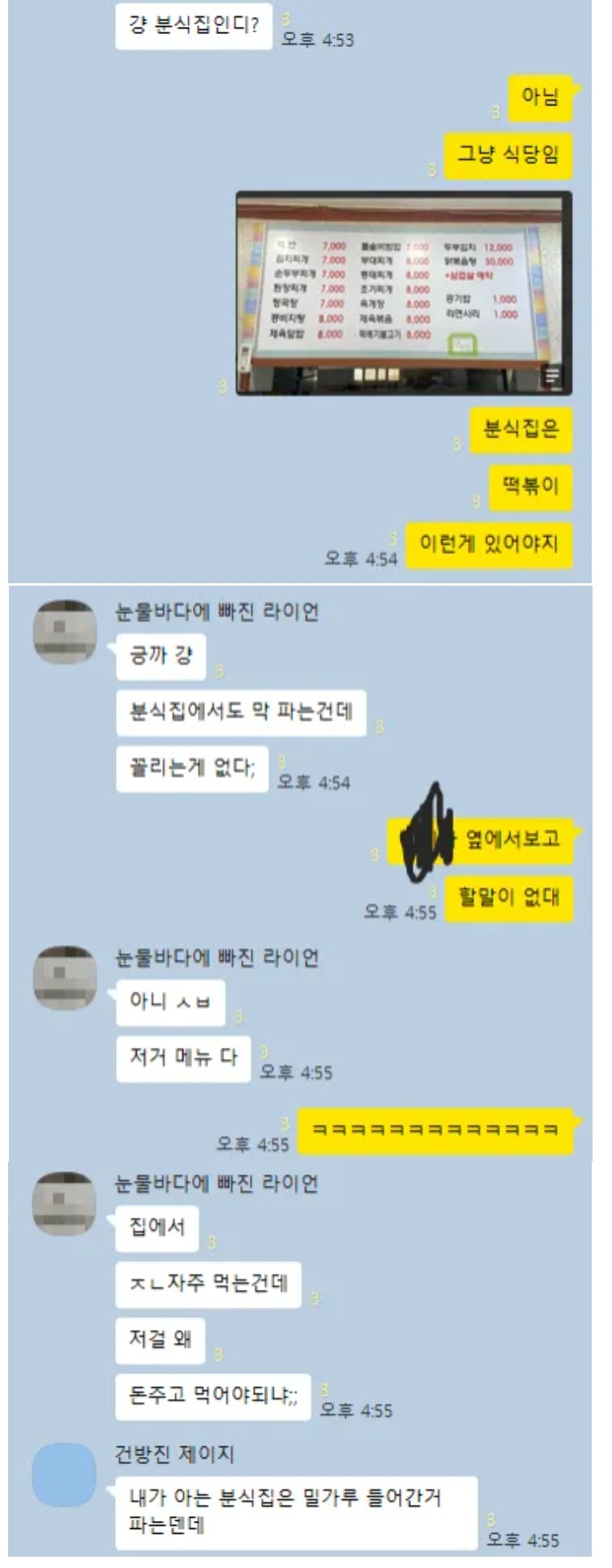 분식집의 기준을 김밥 천국으로 잡았나 보네
