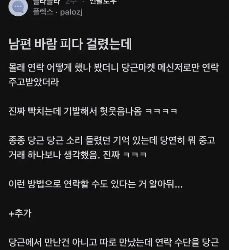 이거 드라마인가 영화에도 나오잖아 마트에서 인질극하는데 불륜녀랑 당근으로 연락하는거