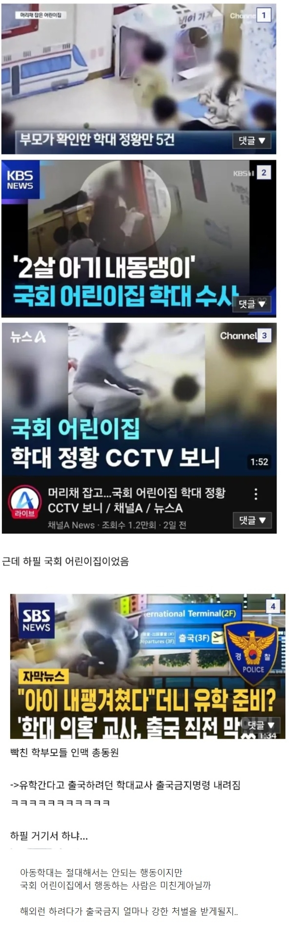 최근 일어난 어린이집 아동학대사건