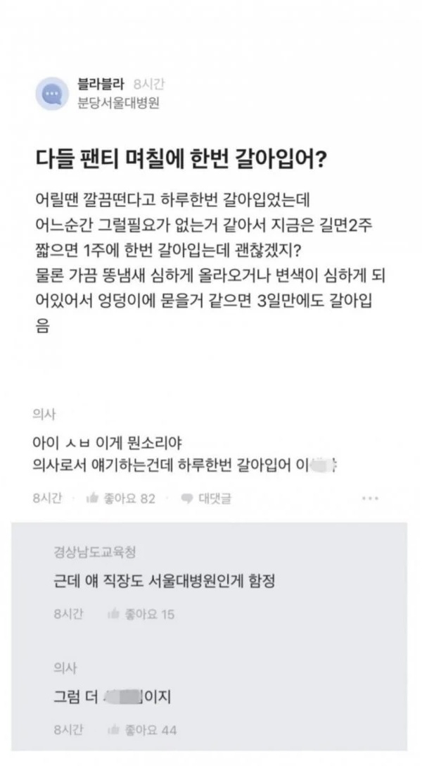 | * | 의사가 생각하는 팬티 갈아입는 주기 [4] | 하얀물결 | 2026/03/02 |