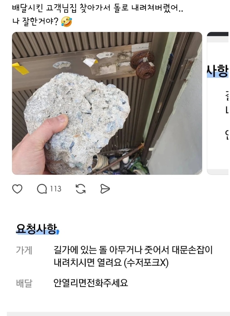 | * | 배달시킨 고객님집 찾아가서 돌로 내려쳐버렸어. [3] | 까칠한냥이 | 2026/03/04 |