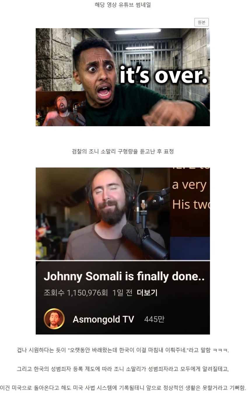 | * | 조니 소말리 3년 구형을 들은 미국 스트리머 반응 [4] | 하얀물결 | 2026/03/04 |