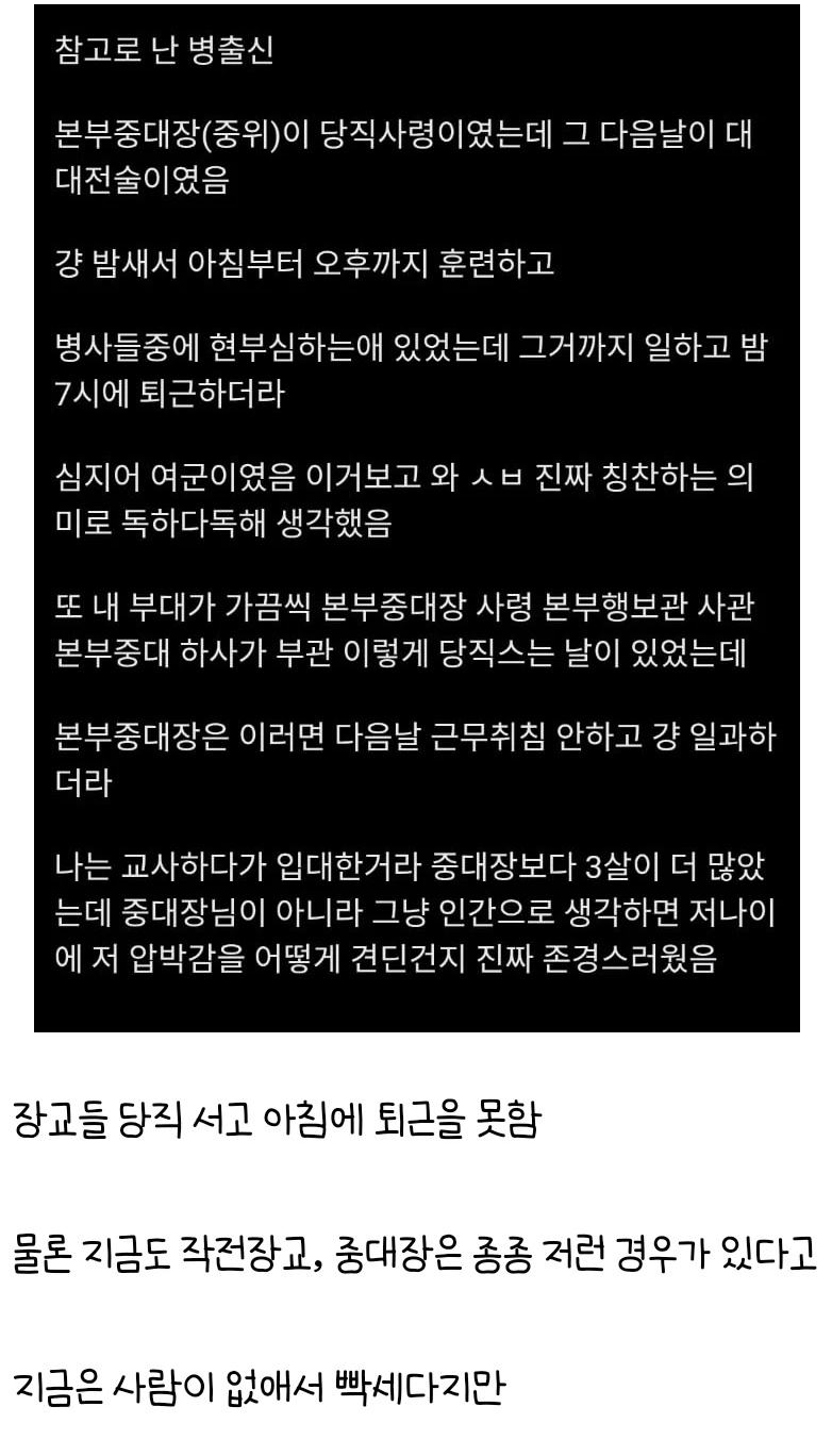 큰훈련 전날 당직은 원래 저러지않나? 지금은 큰훈련이 있는데 퇴근해?