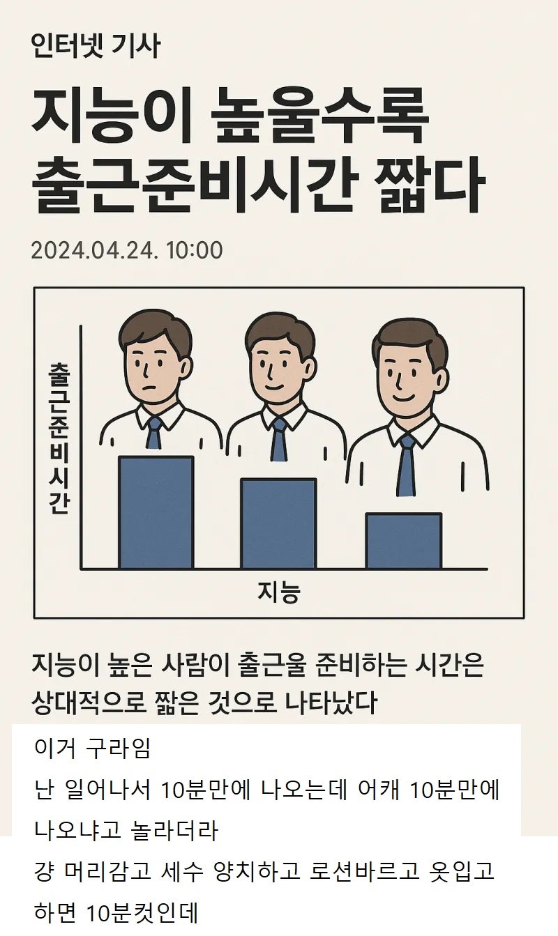 * 고지능 일수록 출근준비시간 짧대 하얀물결 2025/11/12