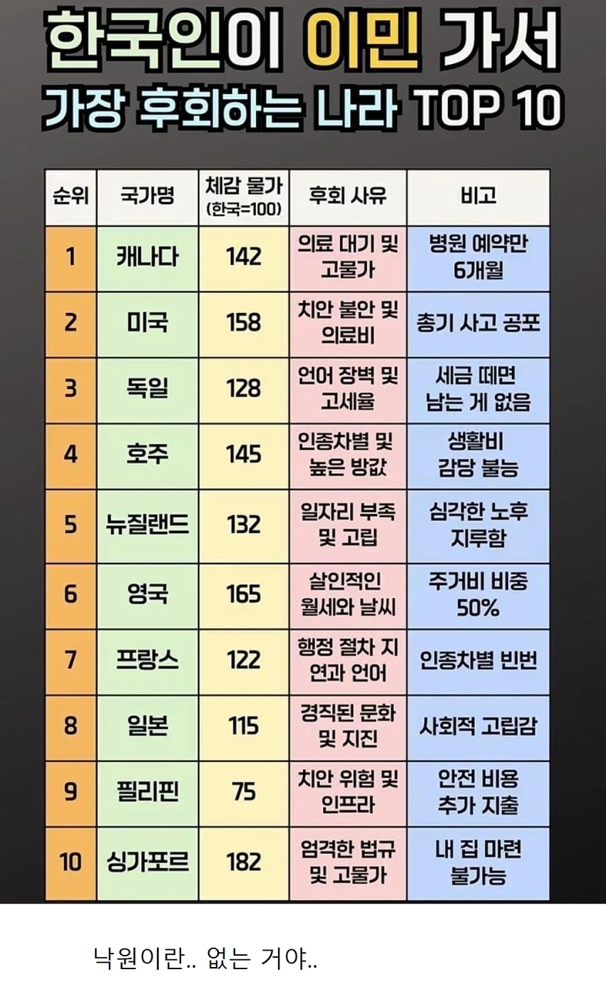 | * | 한국 사람들이 이민가서 가장 후회하는 나라들. | 센키건 | 2026/01/31 |