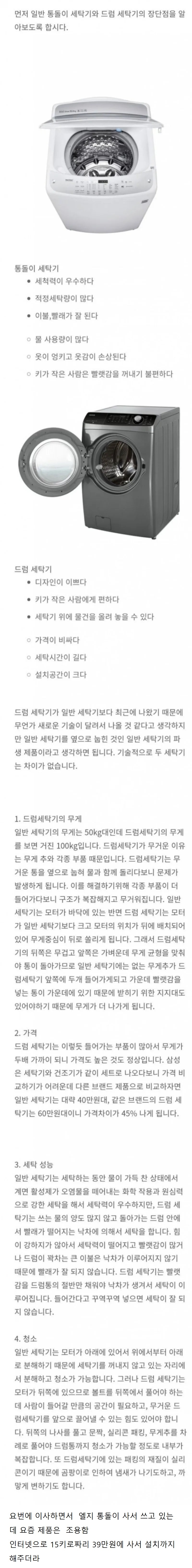 역시 통돌이가 최고지 드럼은 이불이 겨울용은 잘안되 3년전부터 드럼으로 겨울용 이불빨때 스트레스가..ㅜㅜ