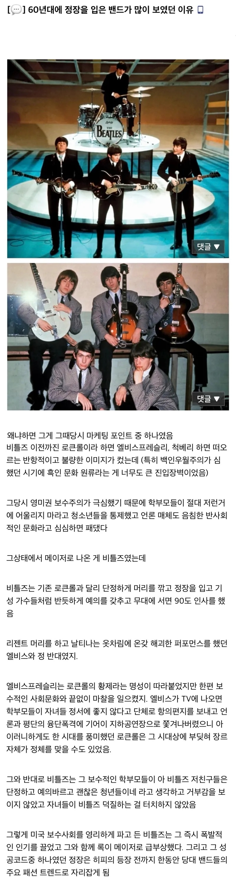 * | [뮤직·아트·도서] | 옛날 “록밴드”들이 정장을 입은 이유. [3] | 센키건 | 2025/10/11 |