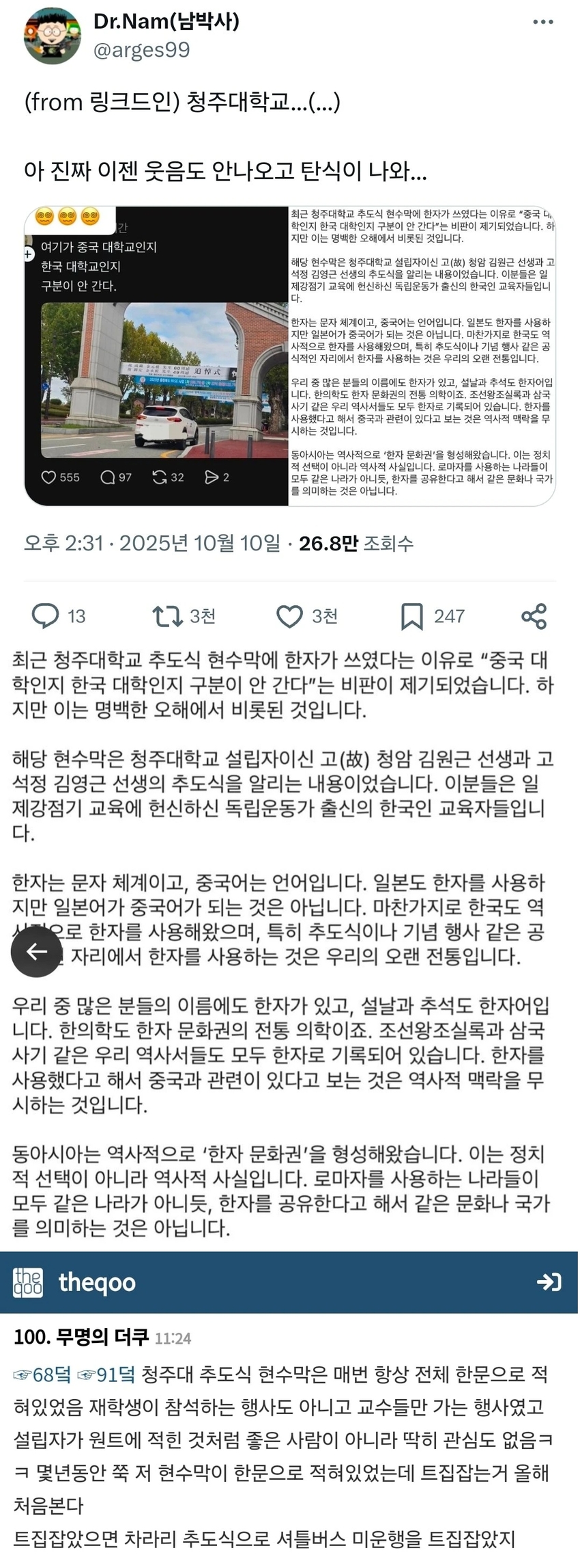 한자어 안다고 중국인이냐는 신입 썰 생각나네 ..