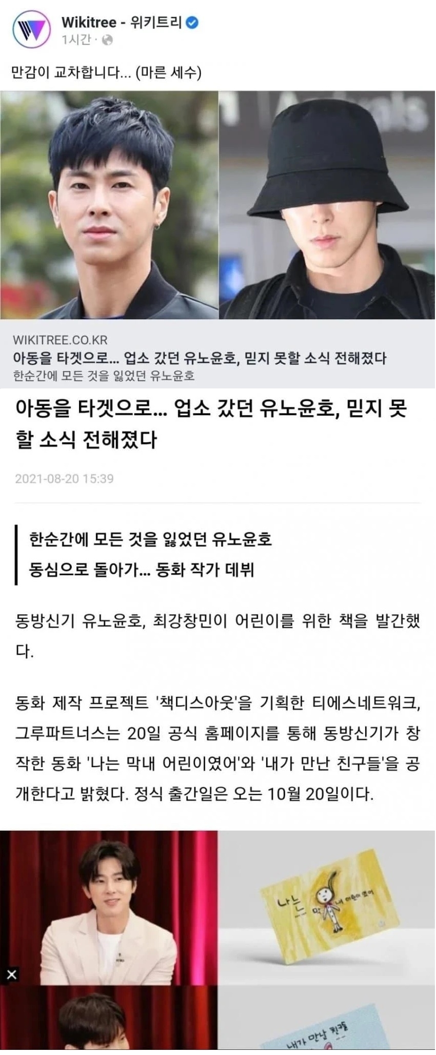 동화작가된것처럼 보이자나여 이건 유노윤호가 기자 묶어놓고 패도 인정해줘야한다