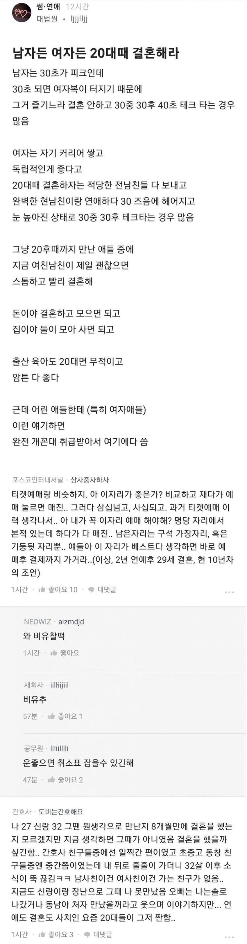| * | [라이터] | 남자든 여자든 20대 때 결혼해라 [4] | 하얀물결 | 2025/11/10 |