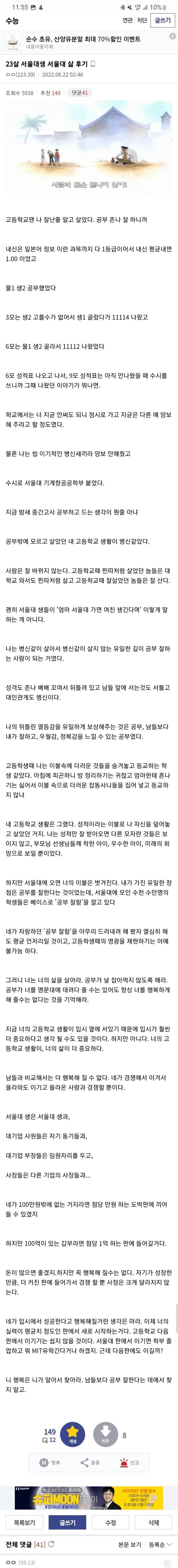 | * | [라이터] | 서울대합격하고 자괴감 온 서울대생 | 준이형 | 2025/12/06 |