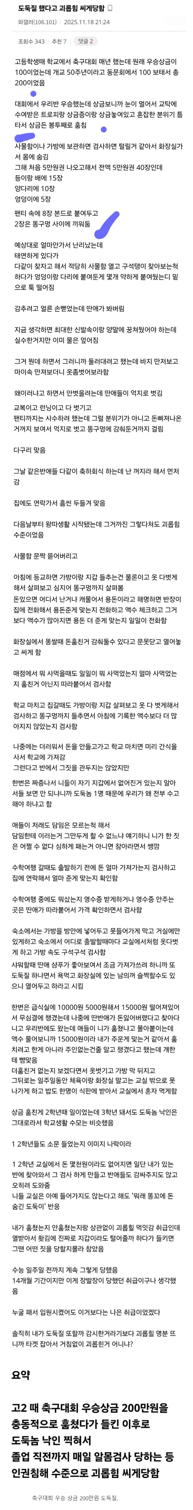 * [트래블] 고딩 때 도둑질 했다고 심하게 괴롭힘 당함. 향이있는밤 2025/12/07