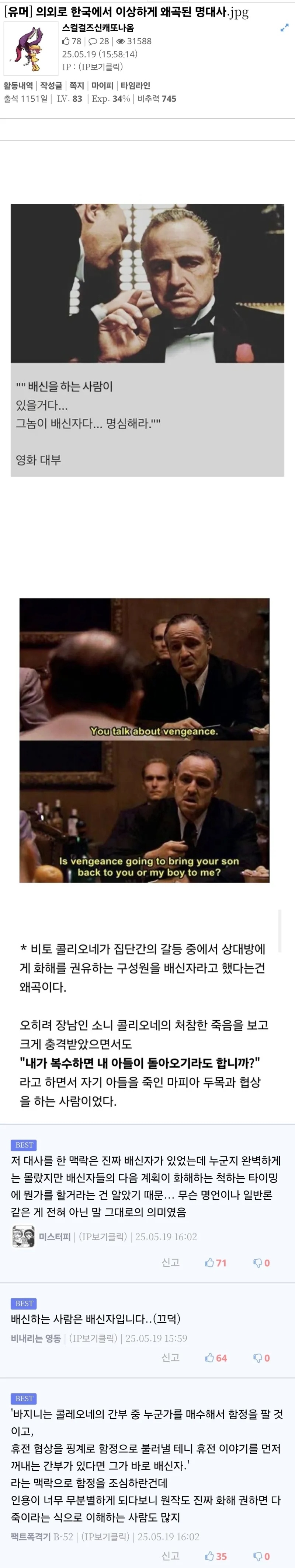 | * | [영화·애니·드라마] | 의외로 한국에서 이상하게 왜곡된 명대사. | 까칠한냥이 | 2025/12/11 |