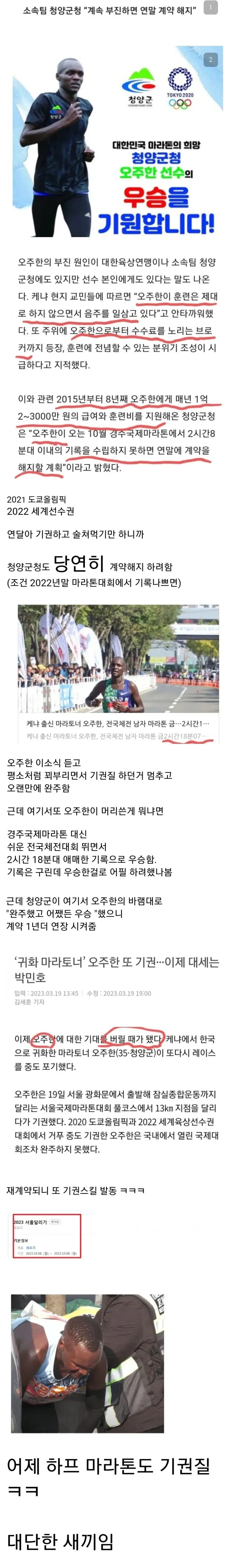 연봉 1억 넘게 받는 귀화 마라토너 충격 근황