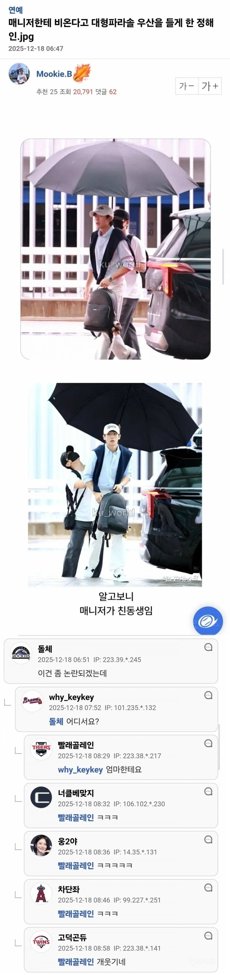 * [연예] 정해인 우산갑질 논란 향이있는밤 2025/12/20
