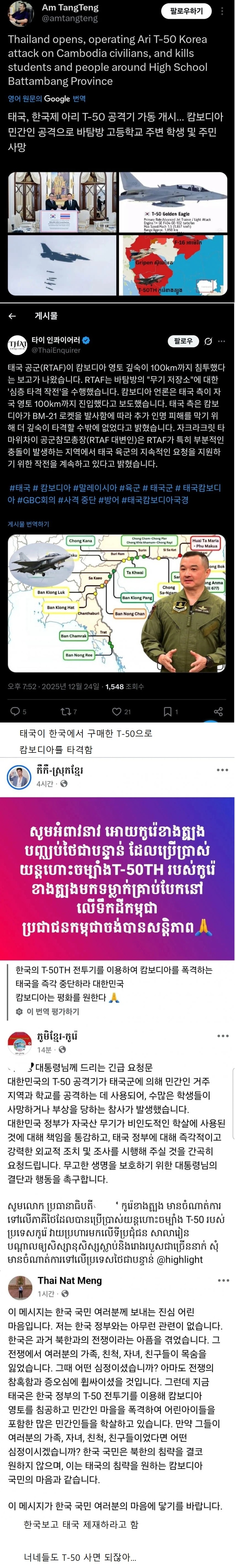 | * | [트래블] | 한국제 T-50 전투기로 공격당한 캄보디아 근황. | 낭인캠퍼 | 2025/12/27 |
