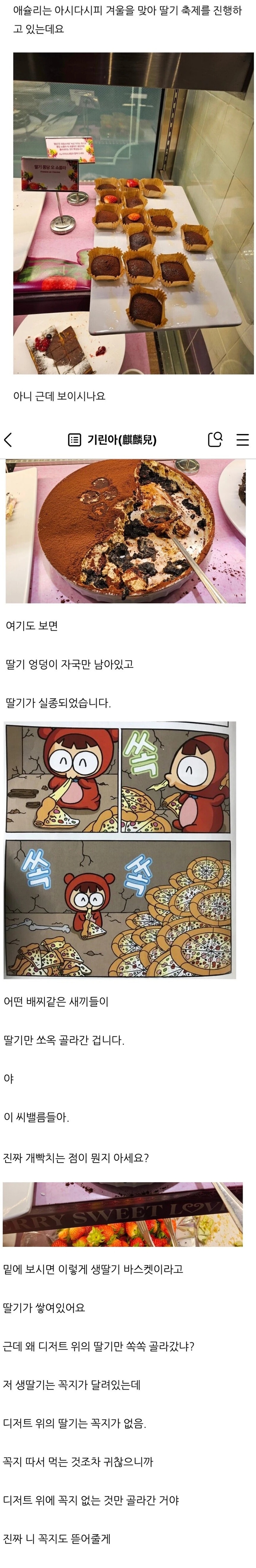 꼭지달린 생딸기 꼭지 떼먹는거보다 저렇게 골라가는게 더 귀찮겠다ㅋㅋㅋ