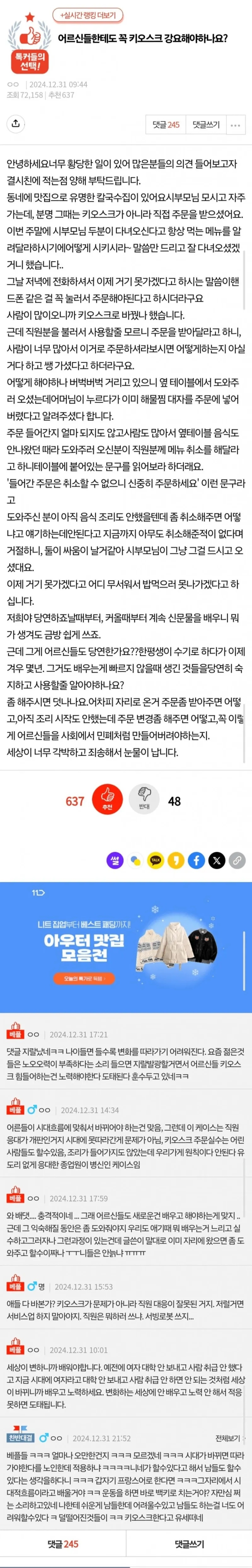 요즘 키오스크 UI 개병신임 내가해도 짜증나는데 어르신은 오죽할까