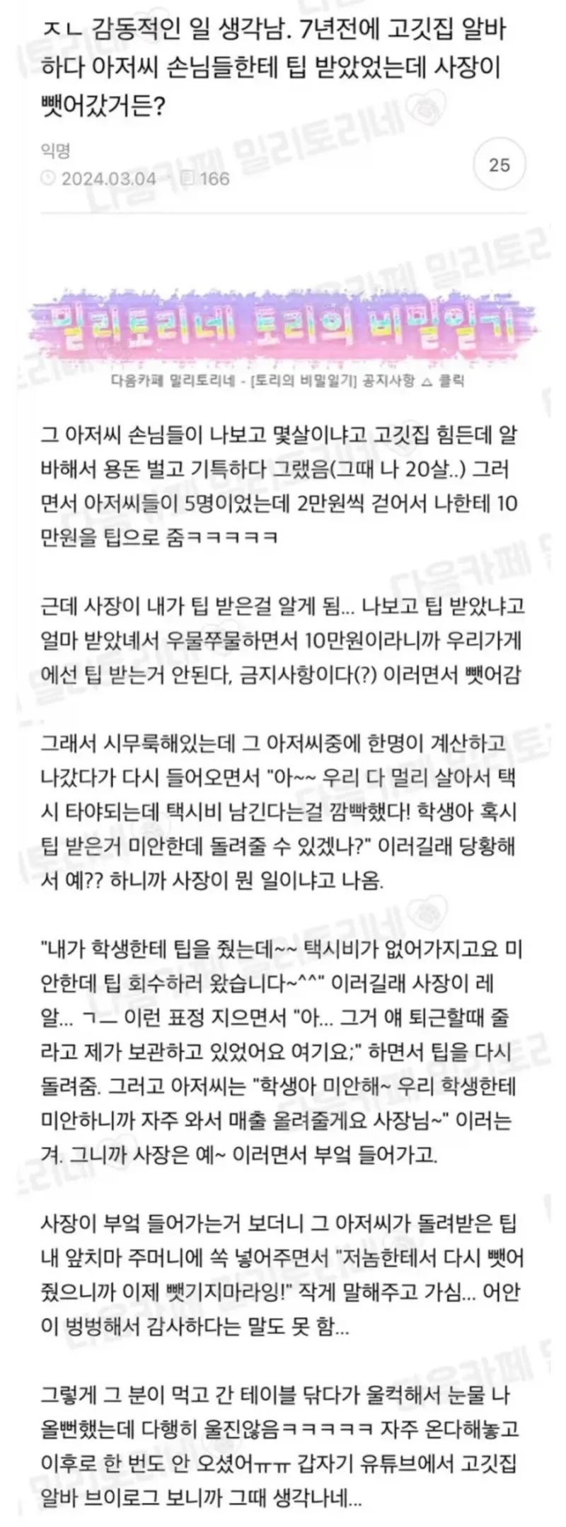사장놈 팁금지면 쫓아가서돌려줄일이지 지가 뺏고 앉았어ㅋㅋㅋ