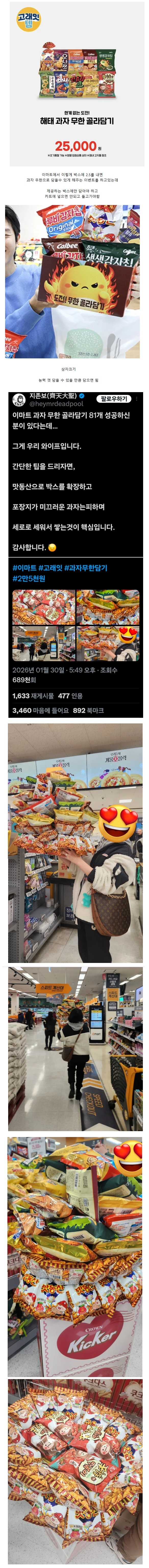 | * | [푸드] | 어제 과자 무한 골라담기 81개 성공한 사람 등장ㄷㄷ. [4] | 하얀물결 | 2026/02/02 |