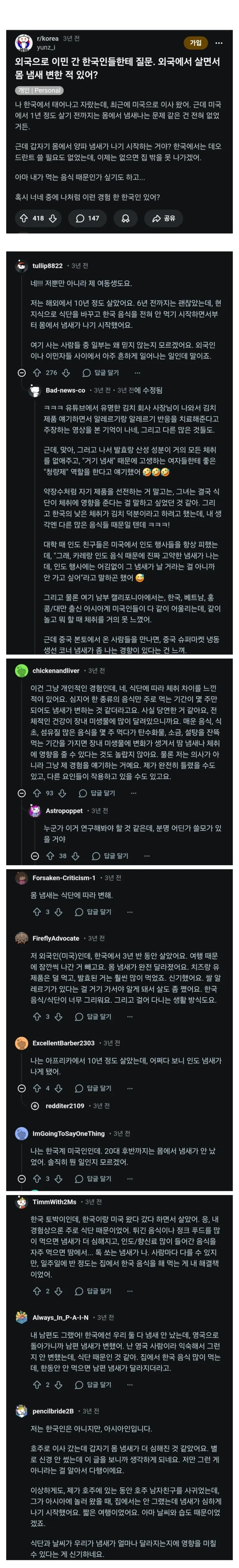 | * | [트래블] | 외국에 살면서 몸에서 냄새가 나기 시작했다는 사람들. [4] | 까칠한냥이 | 2026/02/02 |
