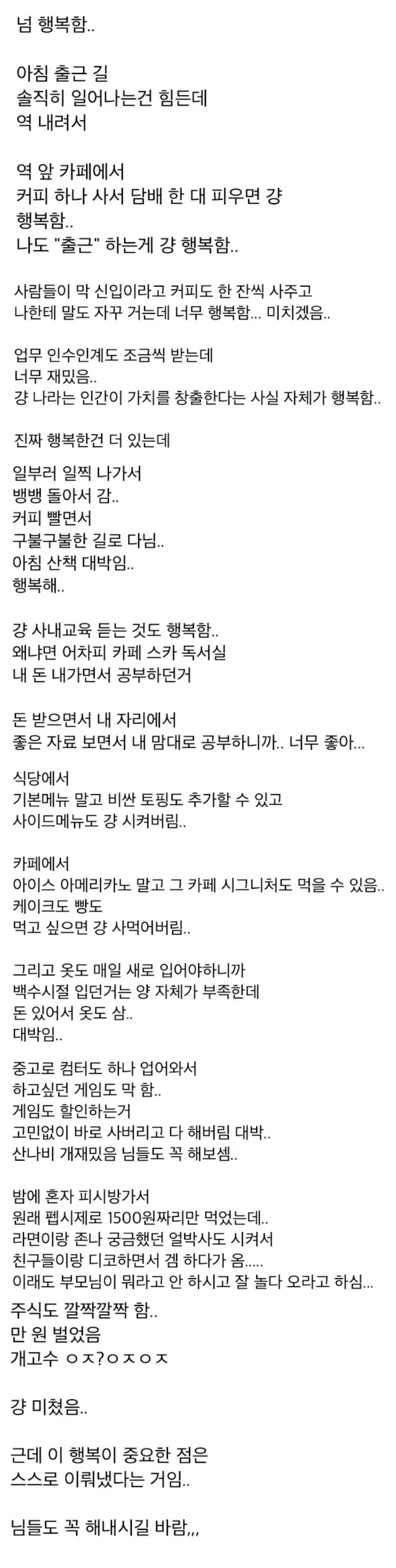 진짜 행복해 보이는 글이네