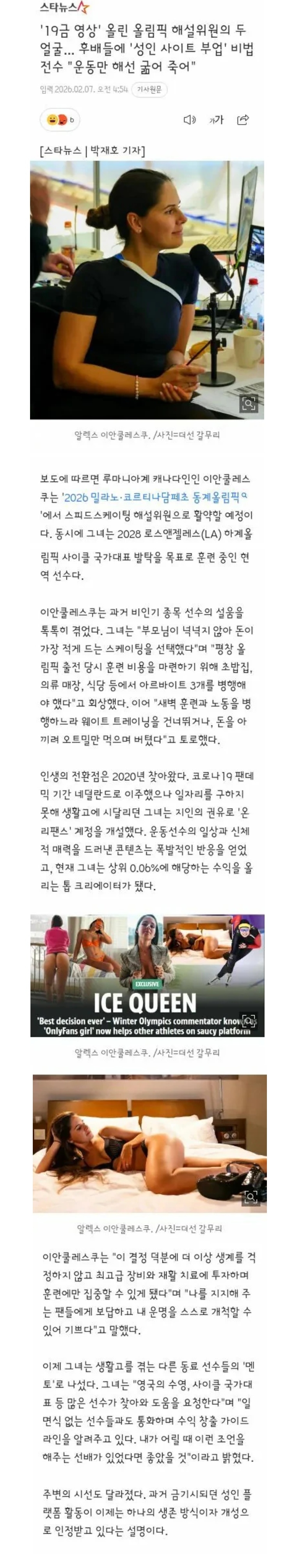 | * | [트래블] | 비인기 종목 올림픽 선수들의 절박함 [4] | 하얀물결 | 2026/02/09 |