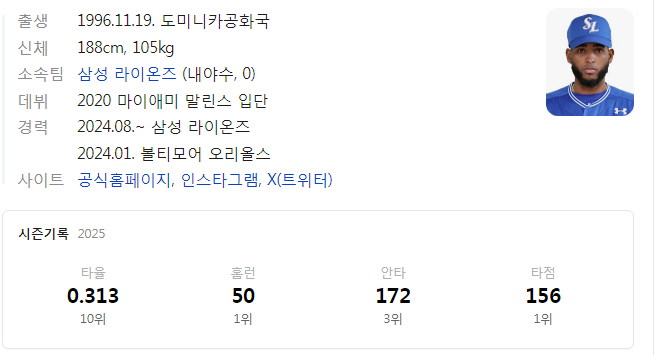 * | [스포츠] | KBO 최초 50홈런-150타점 기록 세운 디아즈의 현재 성적 | wookwayDda | 2025/09/30 |