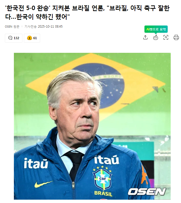 -------------- 더 아프게 때려도 된다 브라질 매체야.. 멀리 왔는데 약해서 미안하다