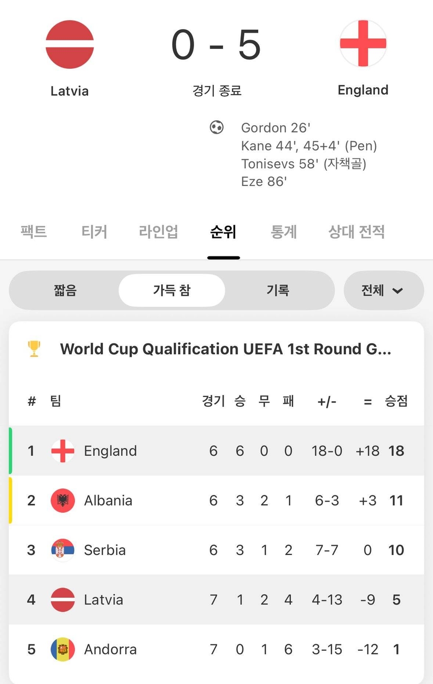 * | [스포츠] | 잉글랜드, 유럽 첫 번째로 월드컵 본선 진출 확정 | 585뭉개리 | 2025/10/15 |
