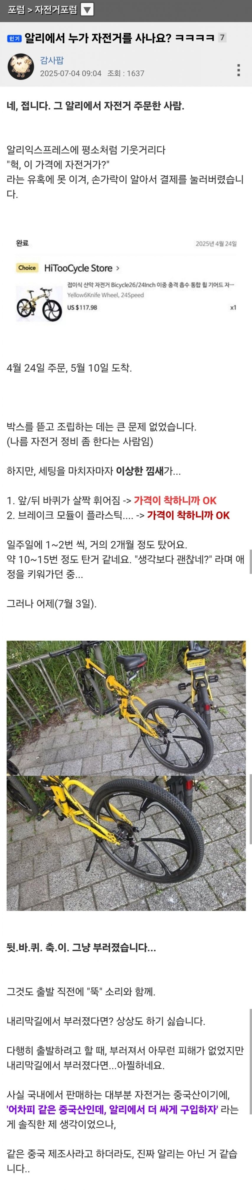 * | [프리] | 알리에서 누가 자전거를 사냐는 뽐뿌인. | 살라딘 | 2025/10/21 |