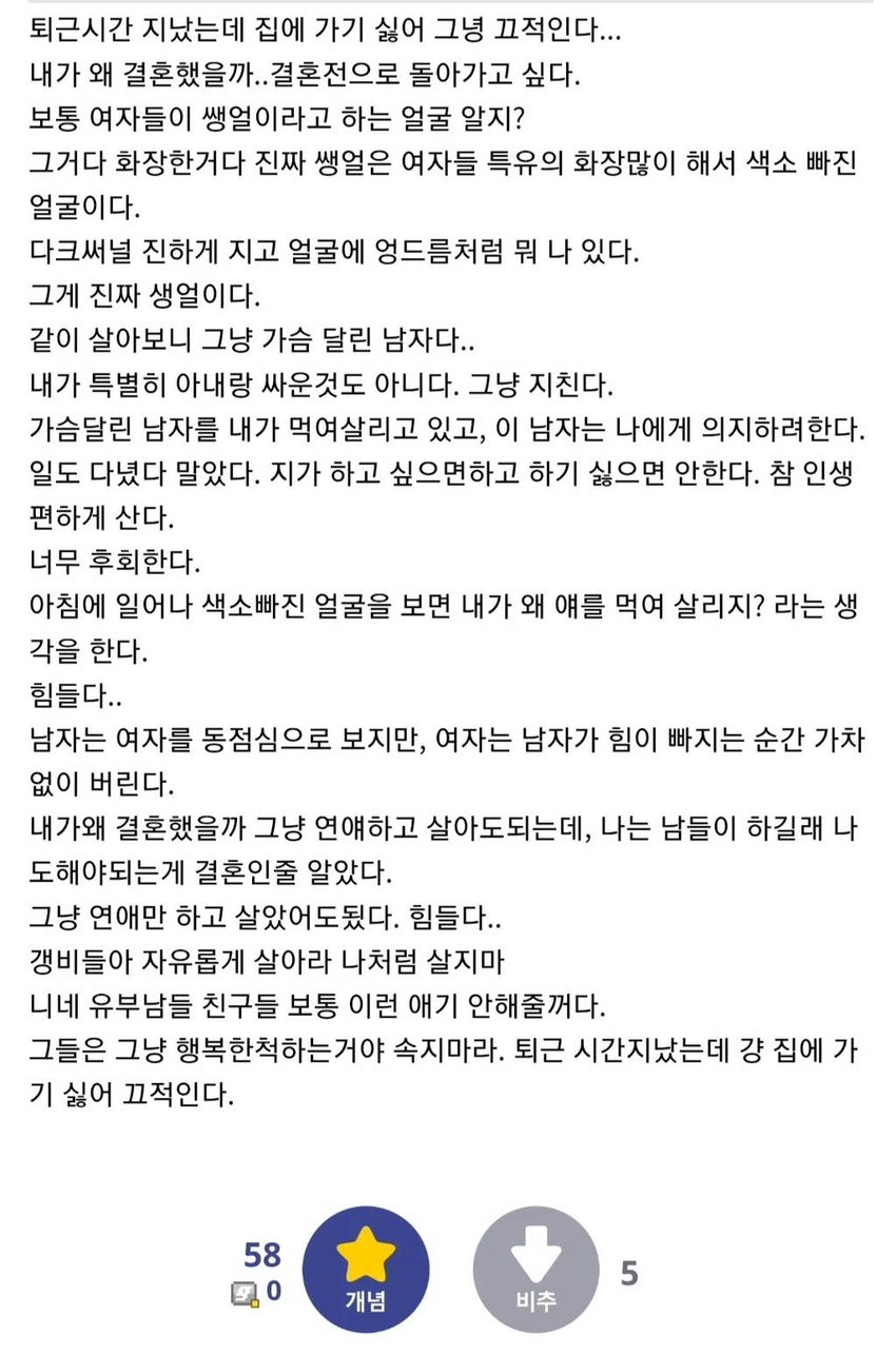 | * | [프리] | 결혼 4년차에 질려버린 사람 [1] | 민gosu | 2025/10/31 |