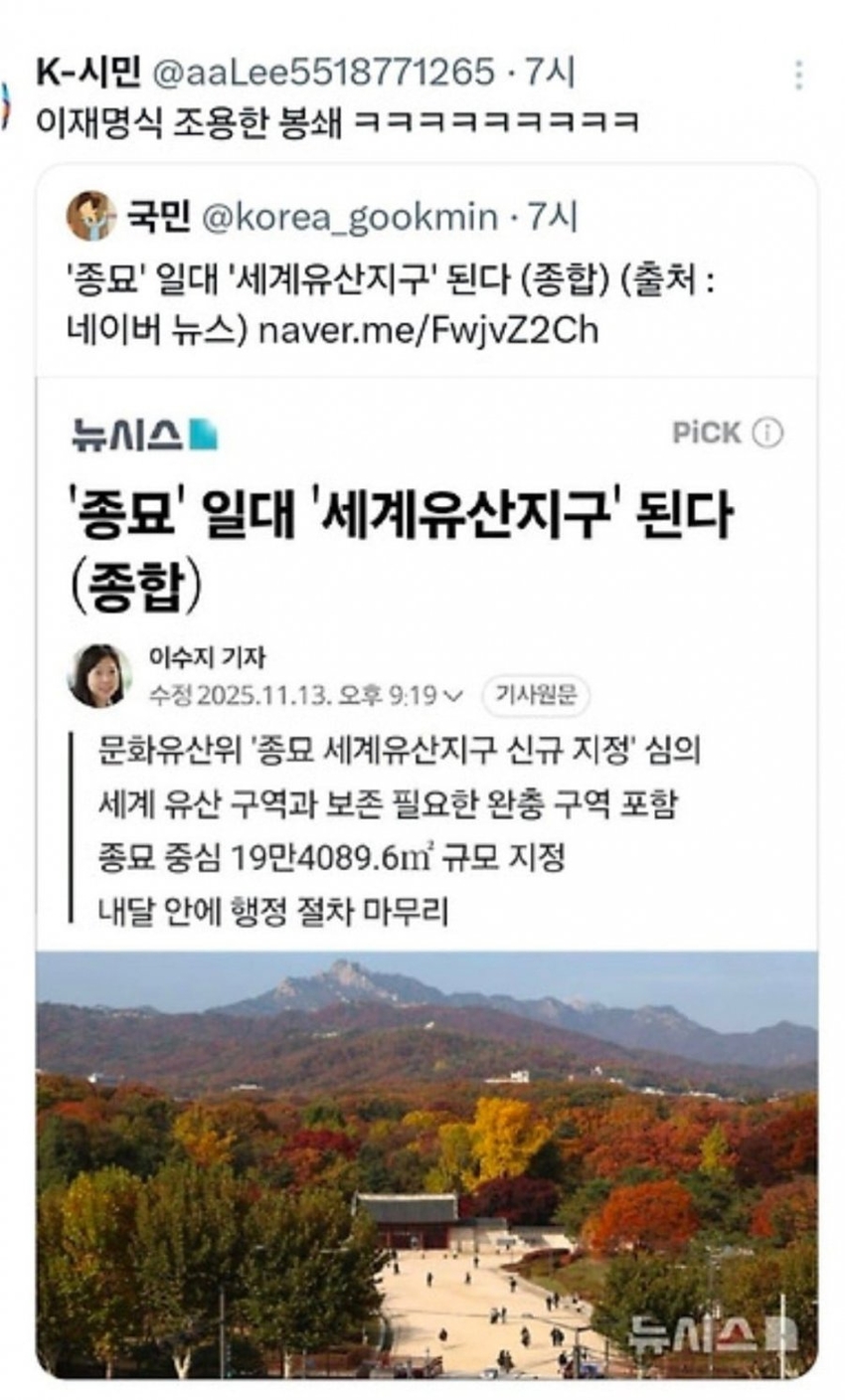 | * | [소셜] | 종묘 일대 조용한 글로벌적 봉쇄 | 러블라이즈 | 2025/11/14 |