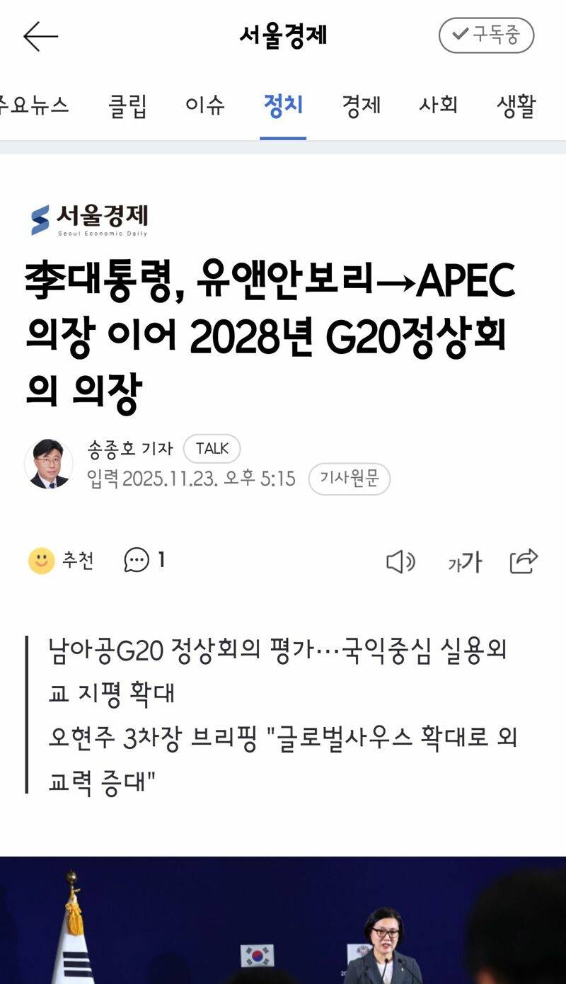 | * | [소셜] | 대한민국 2028년 G20 의장국 선정 | 카와이데쓰 | 2025/11/23 |