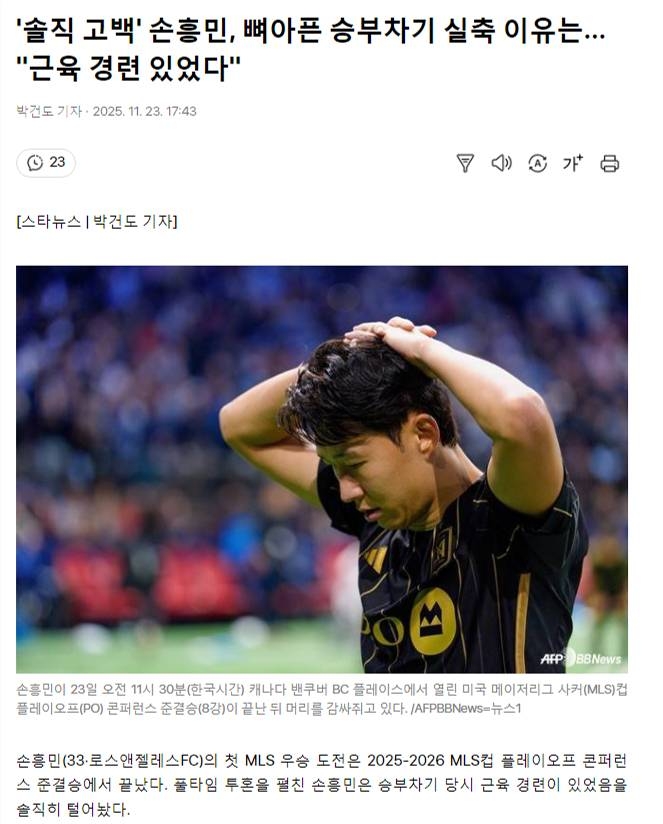 | * | [스포츠] | 역시나 그랬던 손흥민 승부차기 실축 이유 | owlwo | 2025/11/23 |