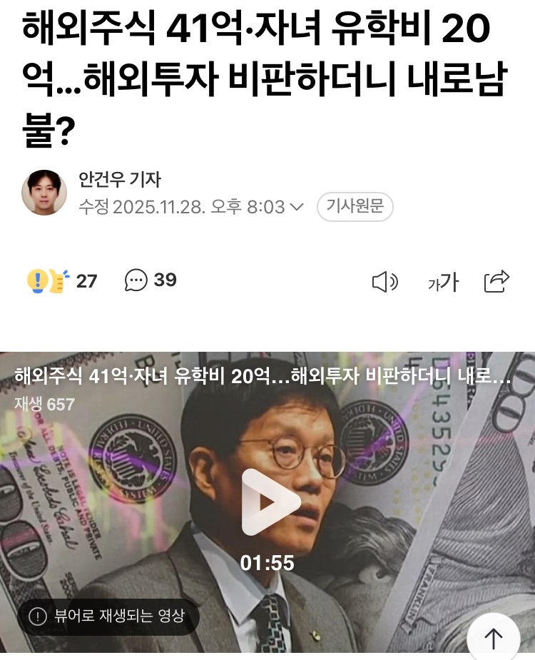 | * | [머니] | 해외주식 41억·자녀 유학비 20억…한은의 내로남불? [2] | 닥터소맥이 | 2025/11/28 |