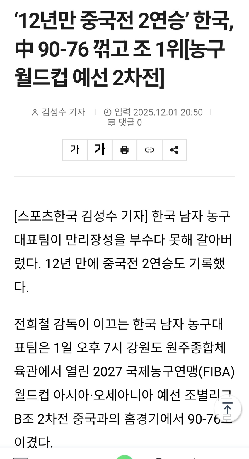 | * | [스포츠] | 한국농구 12년만에 중국에 2연승 [1] | 발광하는심술 | 2025/12/02 |