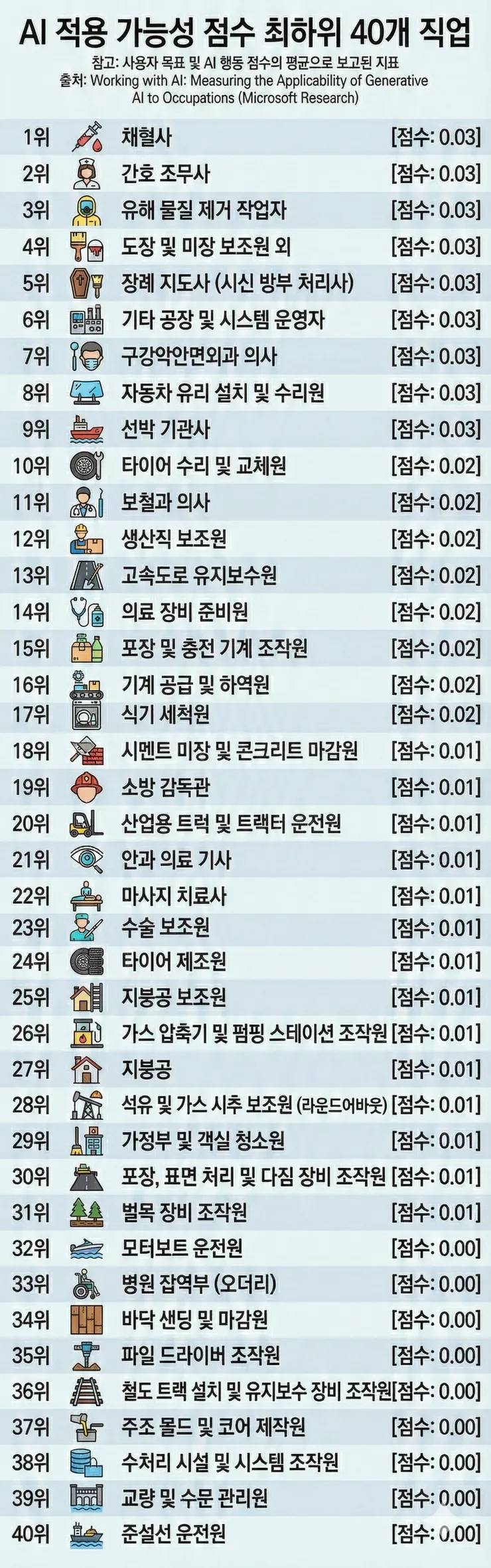 | * | [프리] | AI로 대체 가능성이 '매우 낮은' 직업 순위 | 솔방울소스 | 2025/12/07 |