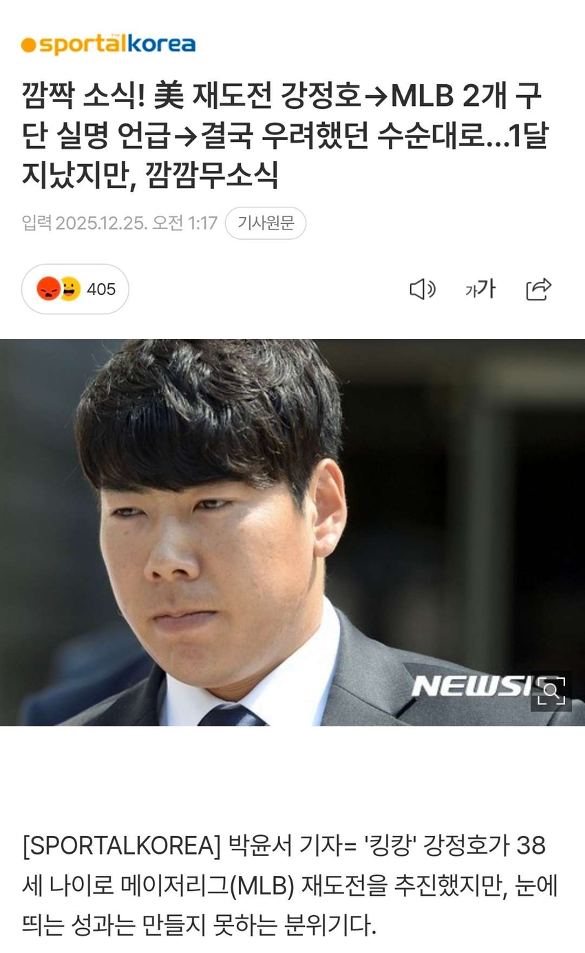 | * | [스포츠] | 메이저 다시 도전했던 강정호 근황 [1] | ionme | 2025/12/25 |