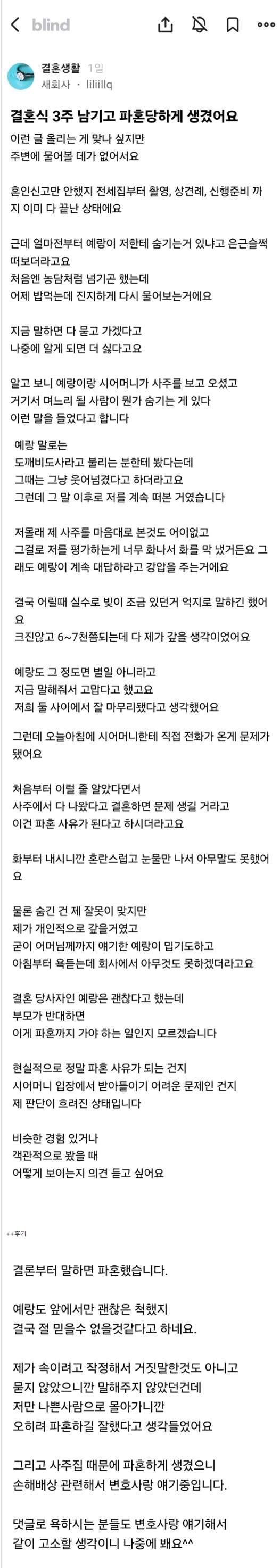 | * | [프리] | 블라) 결혼식 3주 남기고 파혼 [2] | 이노세의우울 | 2025/12/26 |