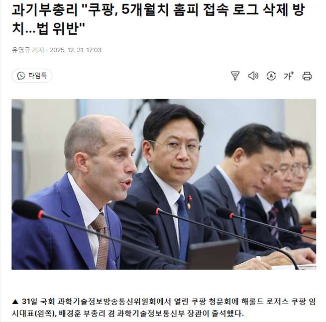 과기정통부가 사고 신고 접수 이후 11월 19일 쿠팡에 자료 보존을 명령했으나 삭제되도록 방치
