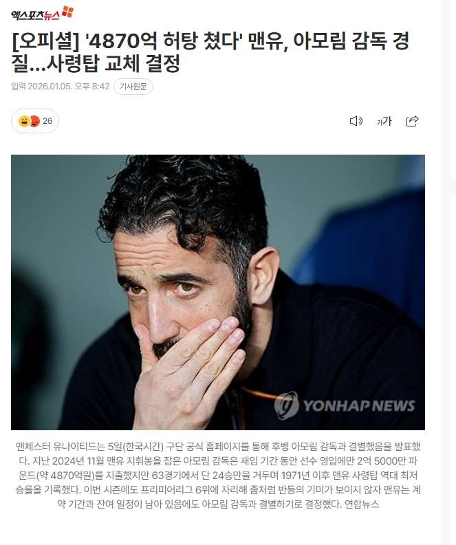맨체스터 유나이티드 공식 홈페이지 - 후벵 아모림 감독이 맨체스터 유나이티드 감독직에서 사임했다. 아모림은 2024년 11월에 부임하여 5월에 스페인 빌바오에서 열린 유로파리그 결승전에 팀을 이끌었다. 팀이 프리미어리그 6위에 머물러 있는 상황에서, 구단 수뇌부는 변화를 줄 적절한 시기라는 결정을 내렸다. 아는 팀이 프리미어리그에서 최대한 높은 순위를 차지할 수 있는 최상의 기회를 제공할 것이다. 구단은 아모림의 공헌에 감사를 표하며 그의 앞날에 행운을 빈다. 대런 플레처 감독이 다가오는 번리전 지휘를 맡을 예정이다.