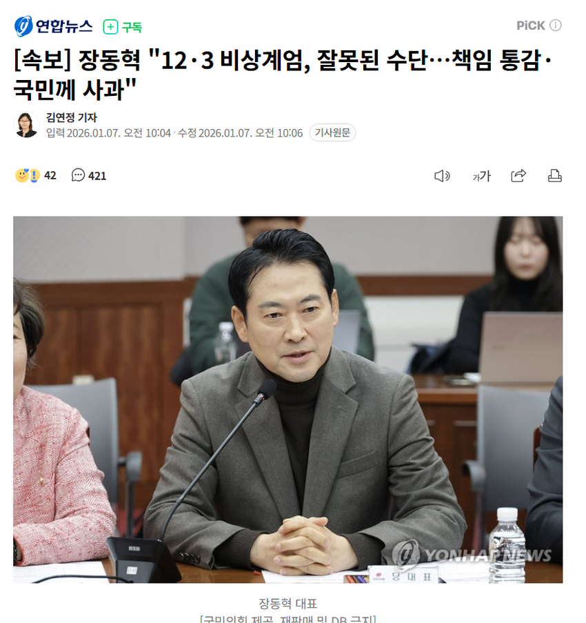 | * | [소셜] | 장동혁 사과 "비상계엄, 잘못된 수단" [1] | 솔방울소스 | 2026/01/07 |