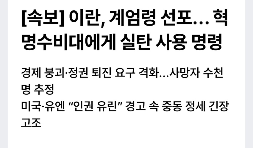 | * | [소셜] | ㅎㄷ 계엄령 선포한 이란 | habbySE | 2026/01/15 |