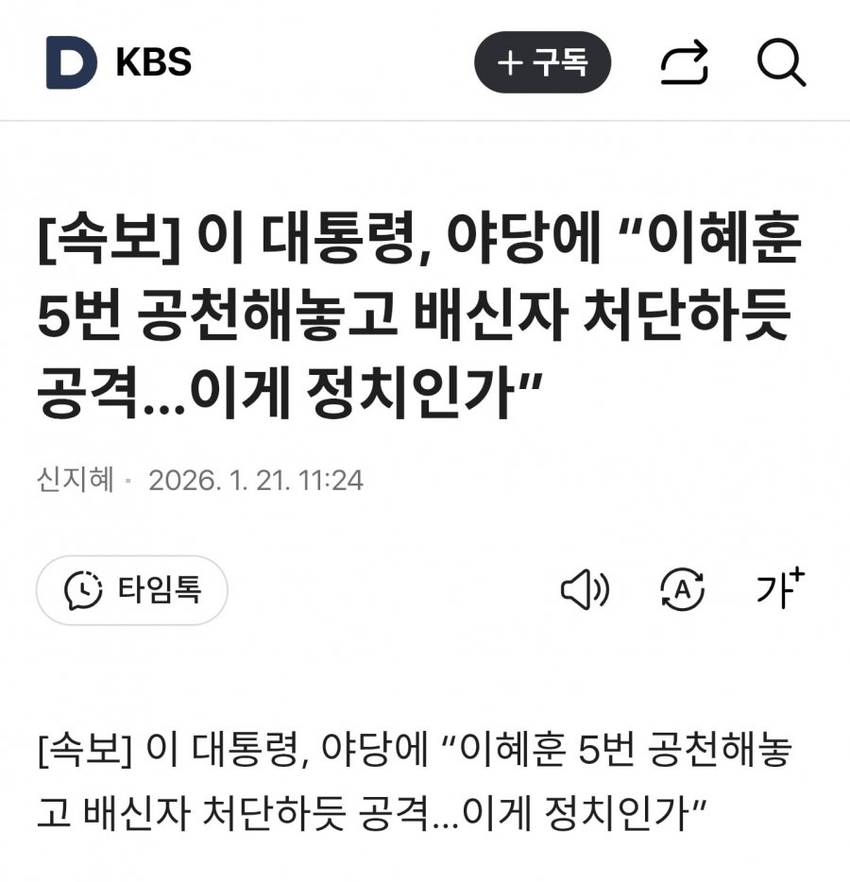 | * | [소셜] | 이혜훈 다섯 번 공천해놓고 배신자 처단하듯 공격..이게 정치인가 | 솔방울소스 | 2026/01/21 |